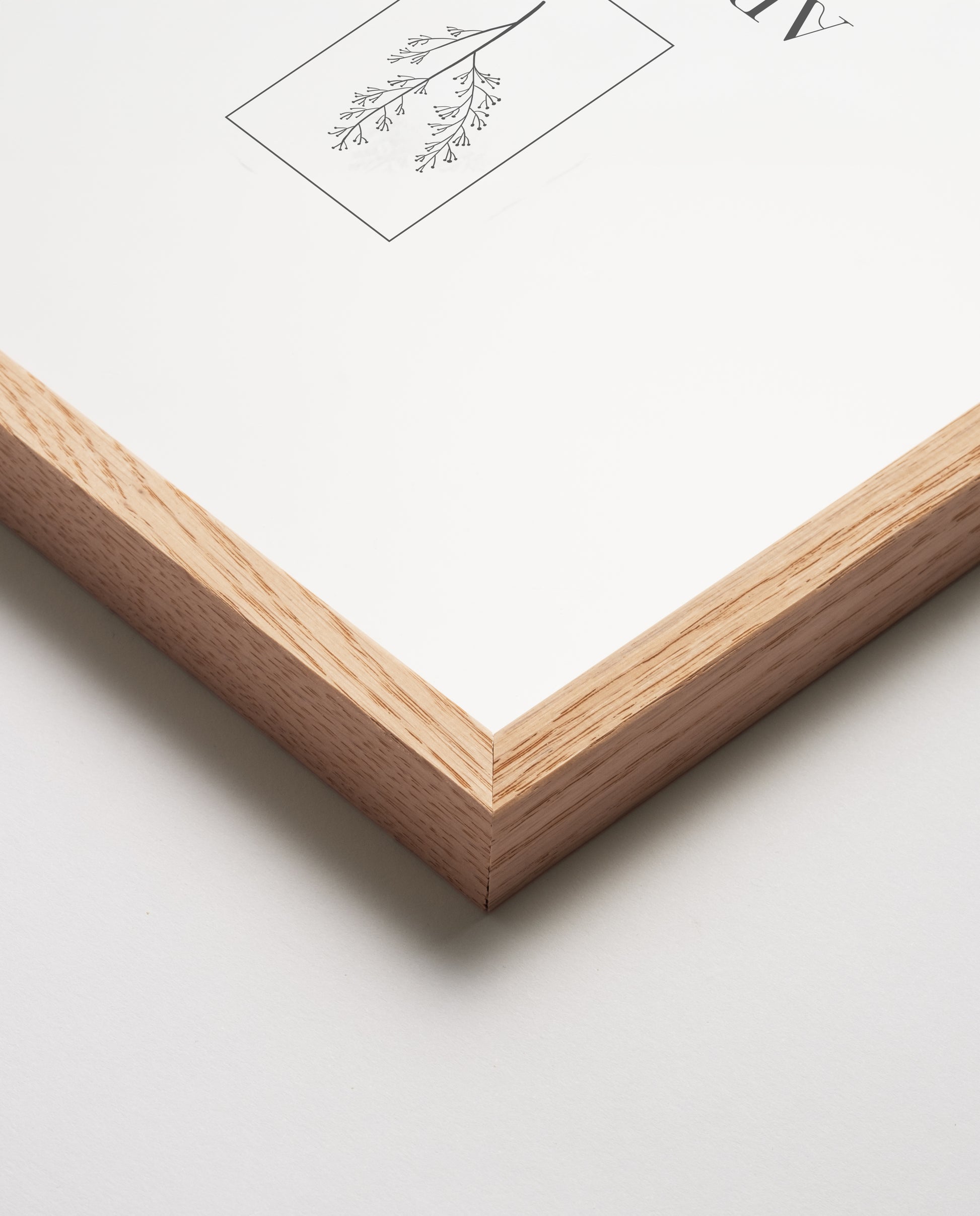 Unsere Bilderrahmen werden in Europa gefertigt. Massives Eichenholz sorgt für hohe Stabilität und Langlebigkeit.