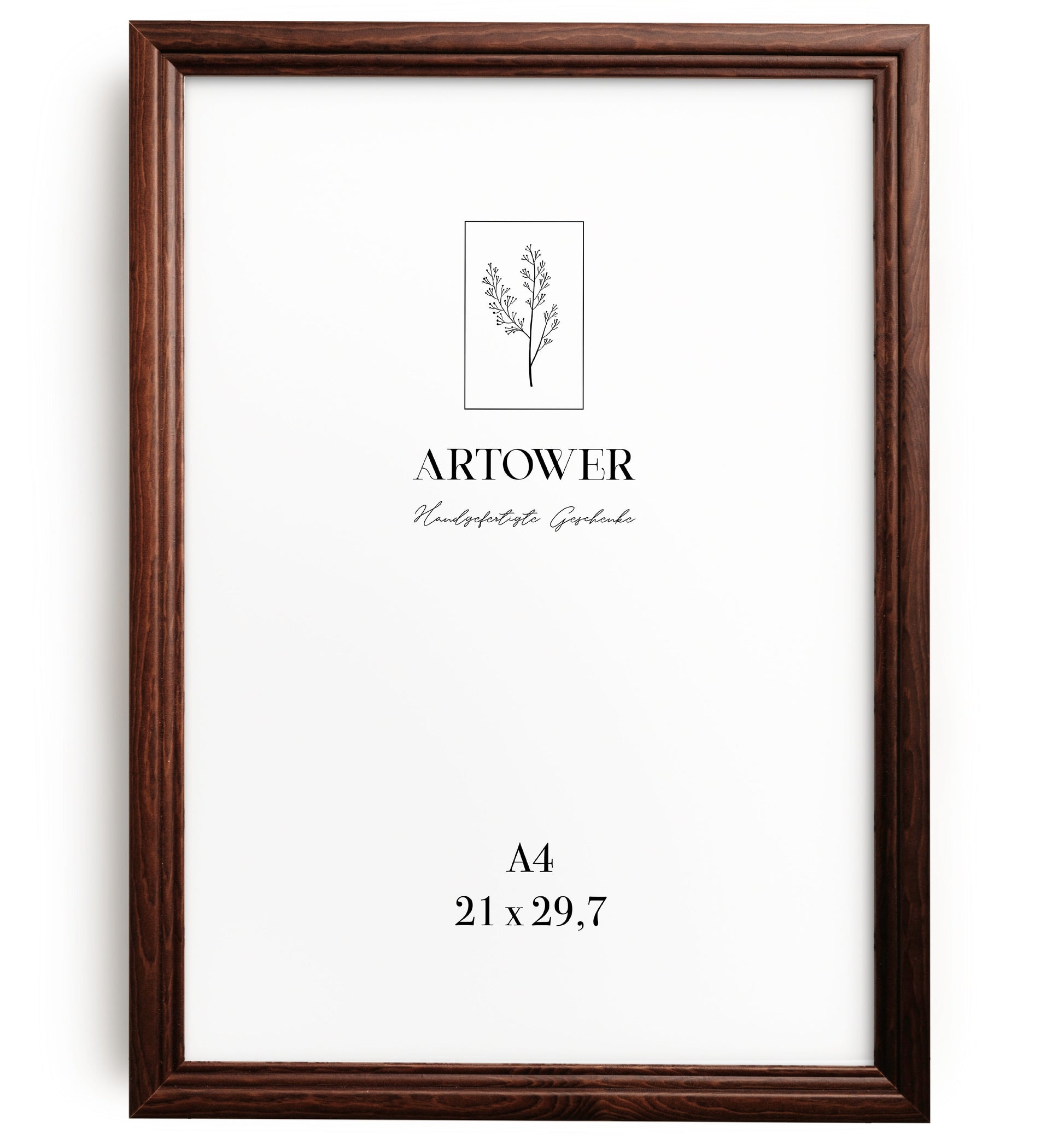 Artower® Vintage Bilderrahmen für A4 (21 x 29,7 cm) Braun – Holzrahmen im klassischen Landhausstil – Fotorahmen für Wand und Tisch