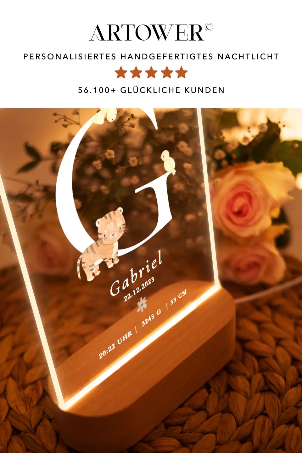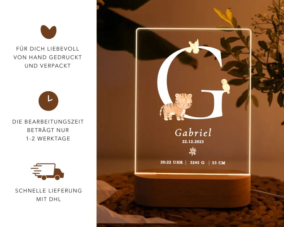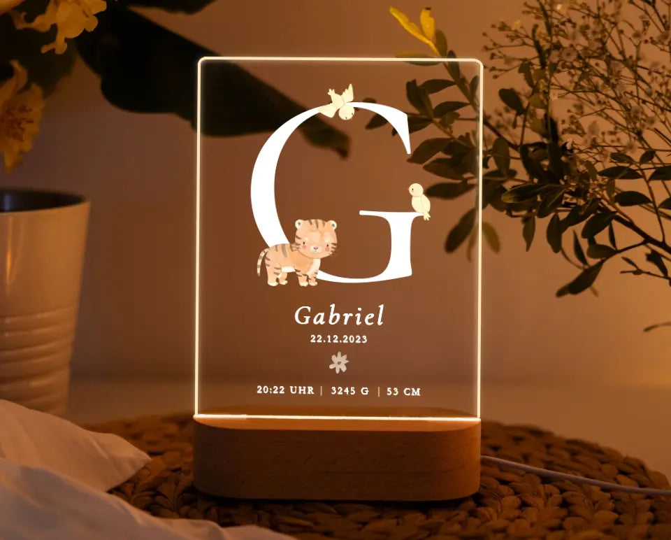 Unsere personalisierte Nachtlampe mit Tiermotiv bringt sanftes, beruhigendes Licht ins Kinderzimmer.