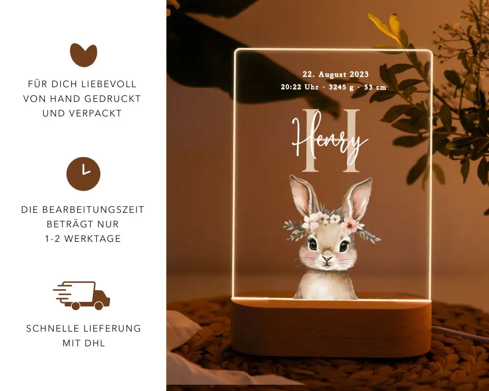 Einzigartiges Babygeschenk! Das süße Tiermotiv und die individuellen Geburtsdaten machen dieses Geschenk besonders und unvergesslich.