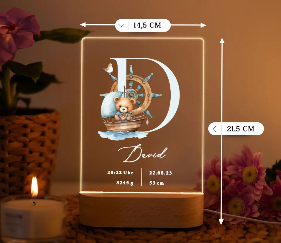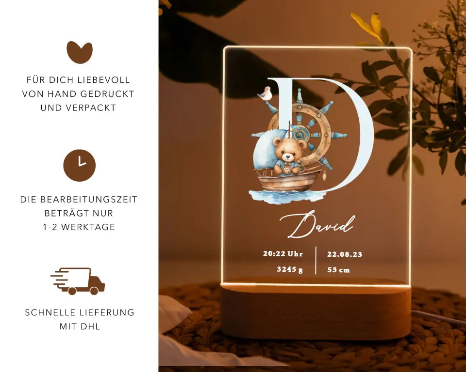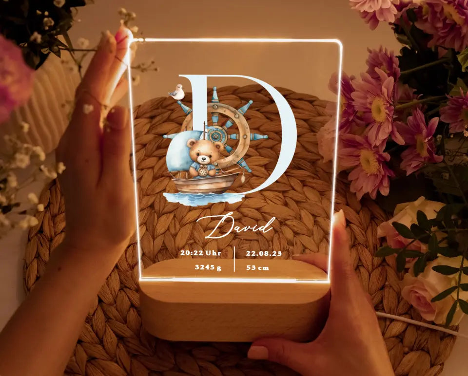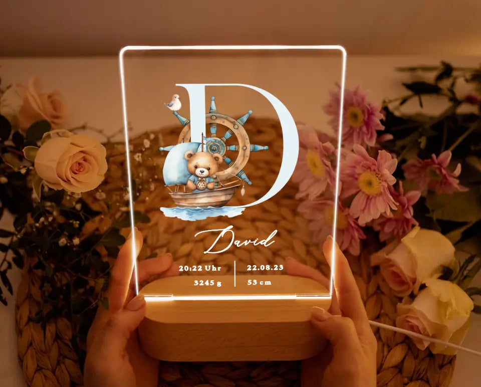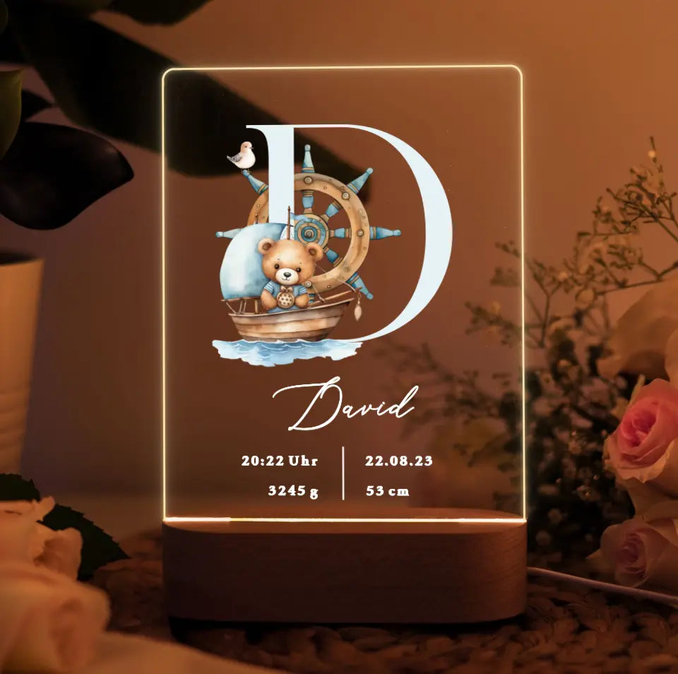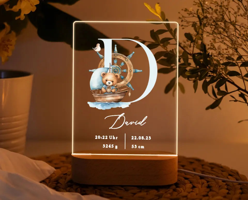 Nachtlicht personalisiert Geburtsgeschenk Aquarell Seemann Teddybär