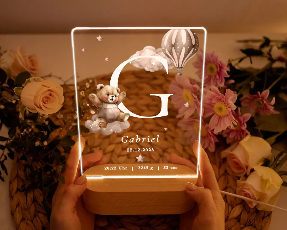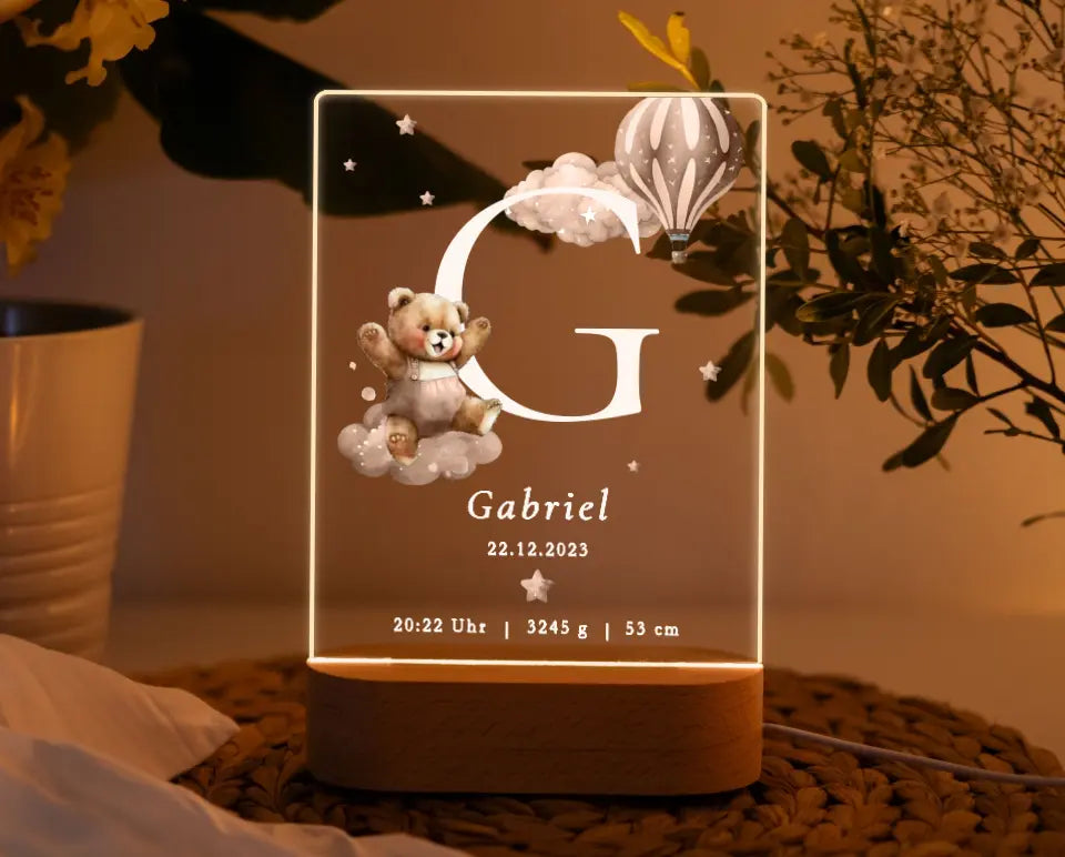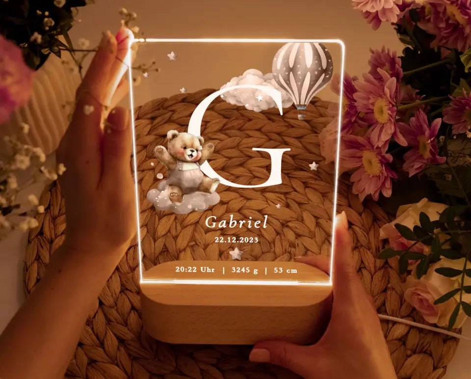 Nachtlicht personalisiert Geschenk zur Geburt Aquarell Bär Beige