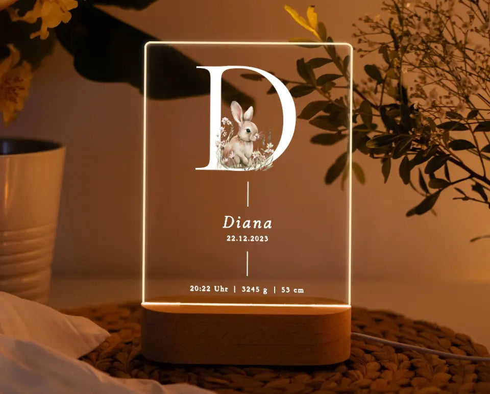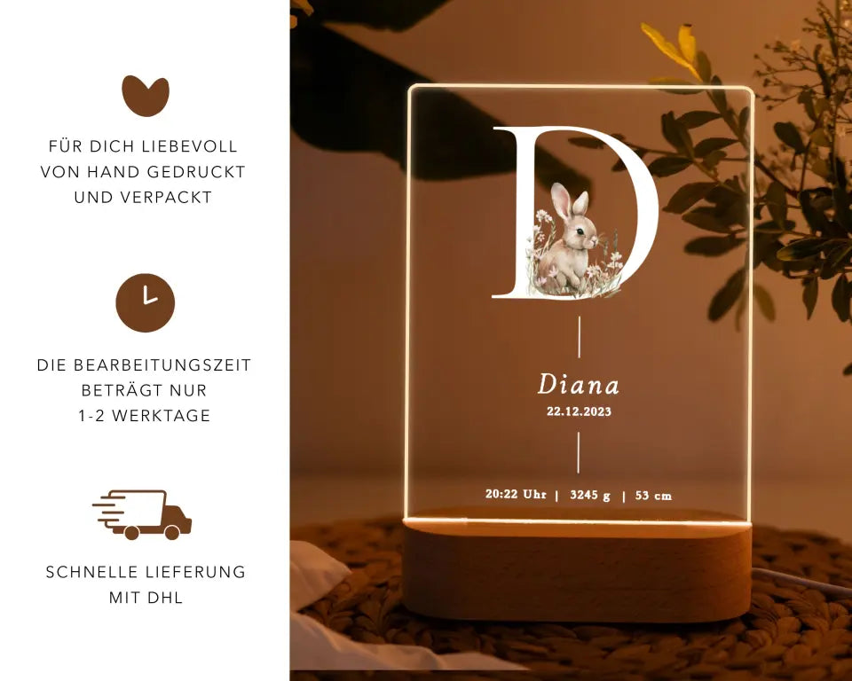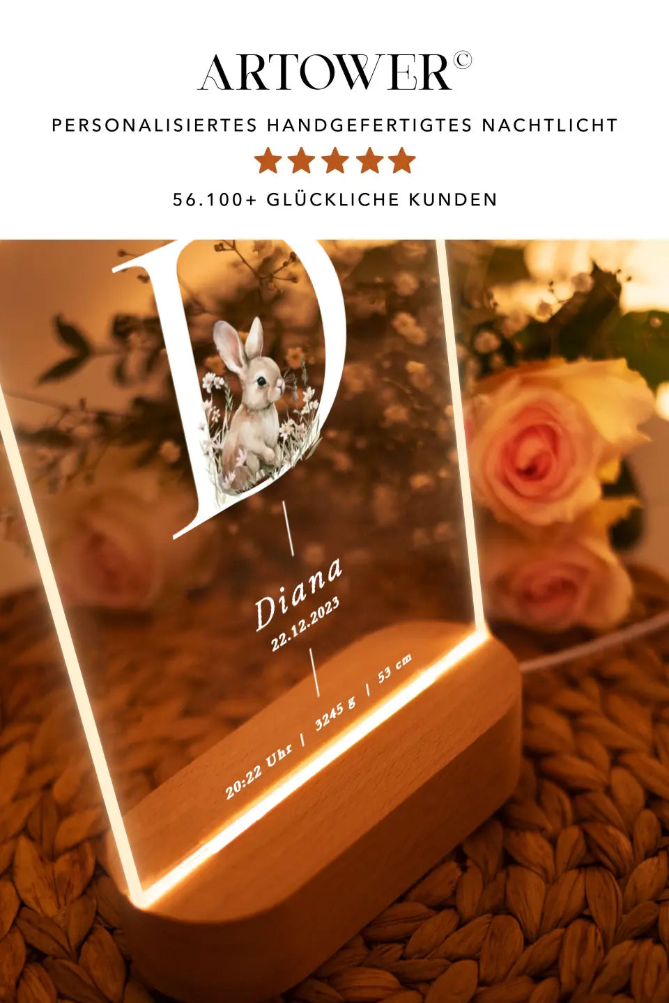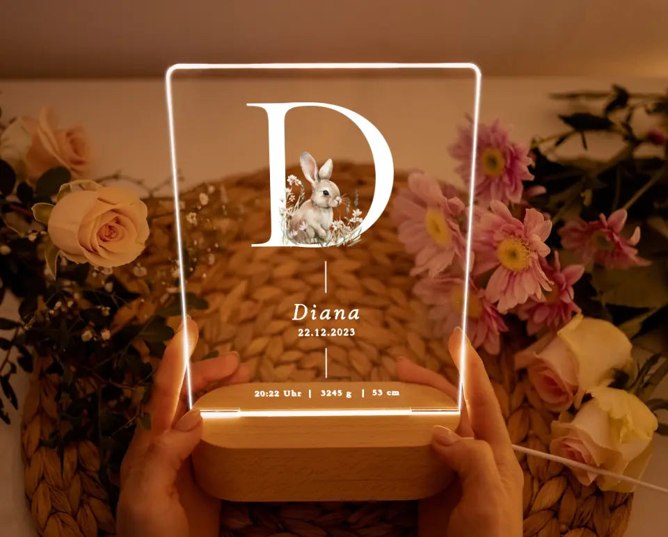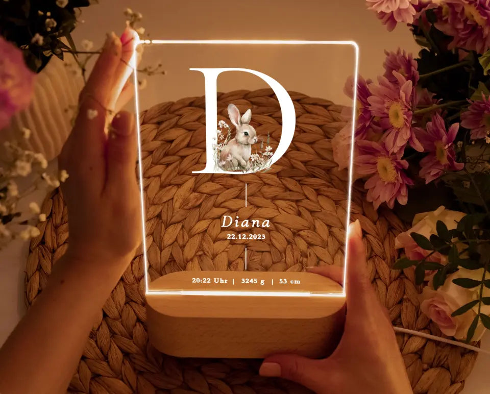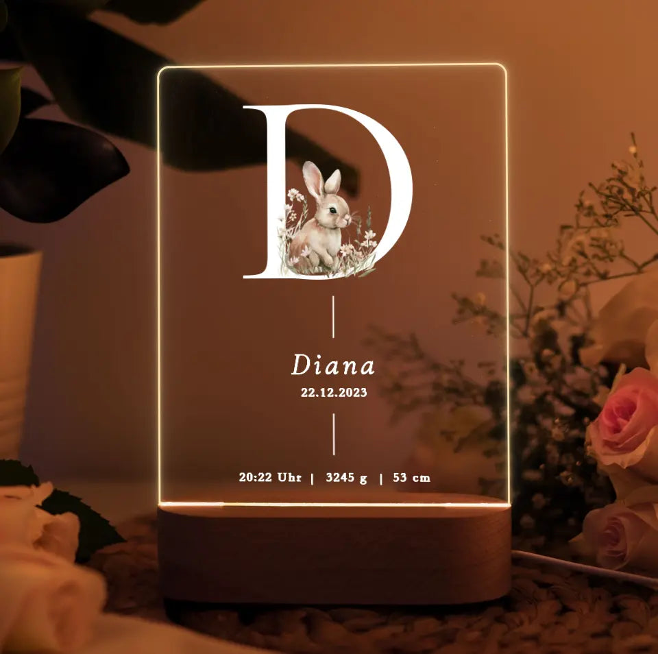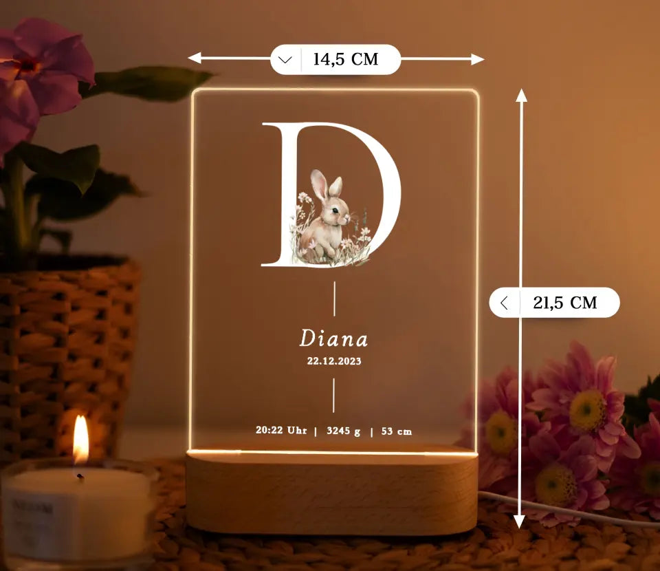 Nachtlicht personalisiert Geschenk zur Geburt Kaninchen Blumen Aquarell