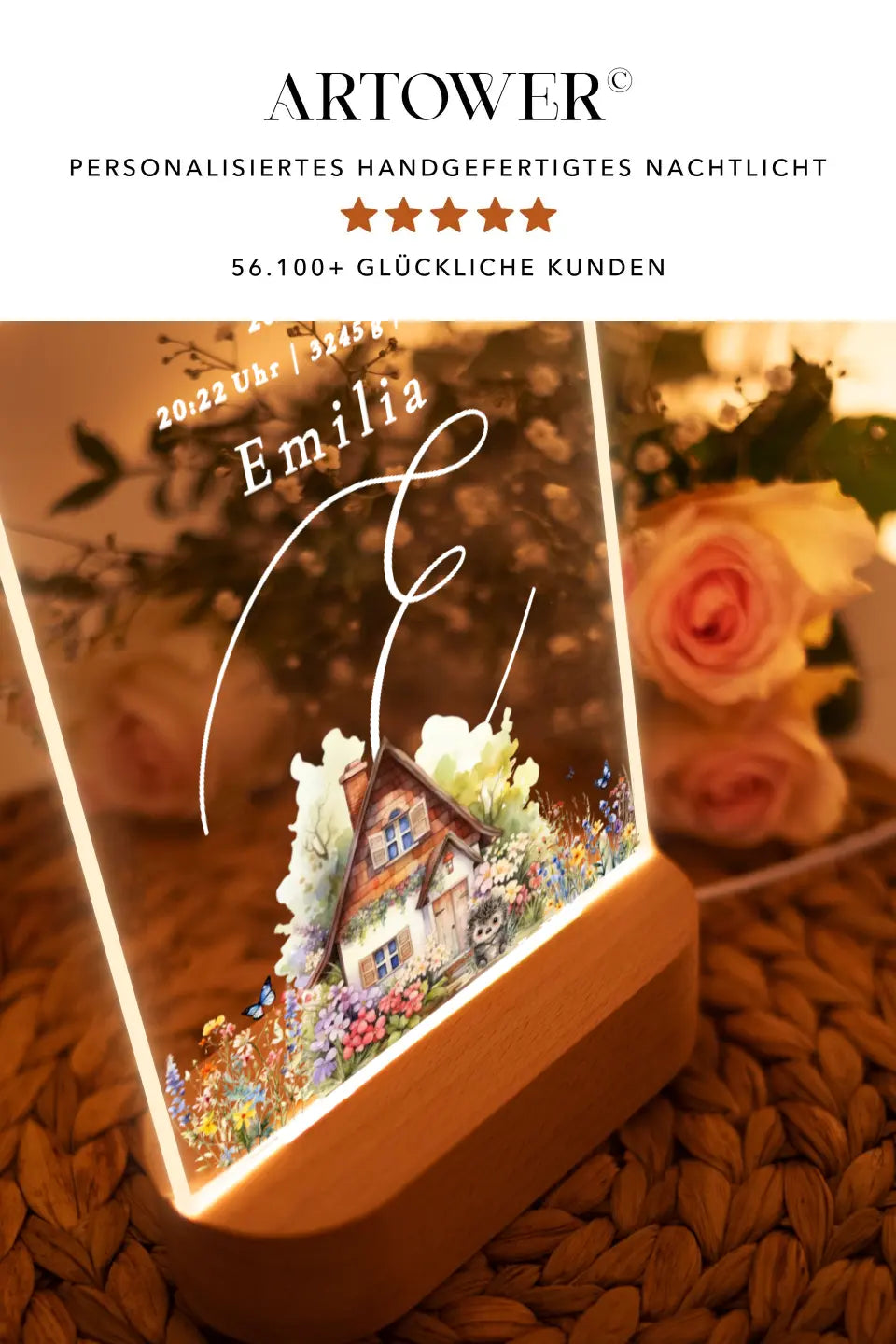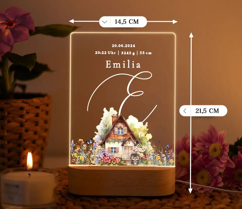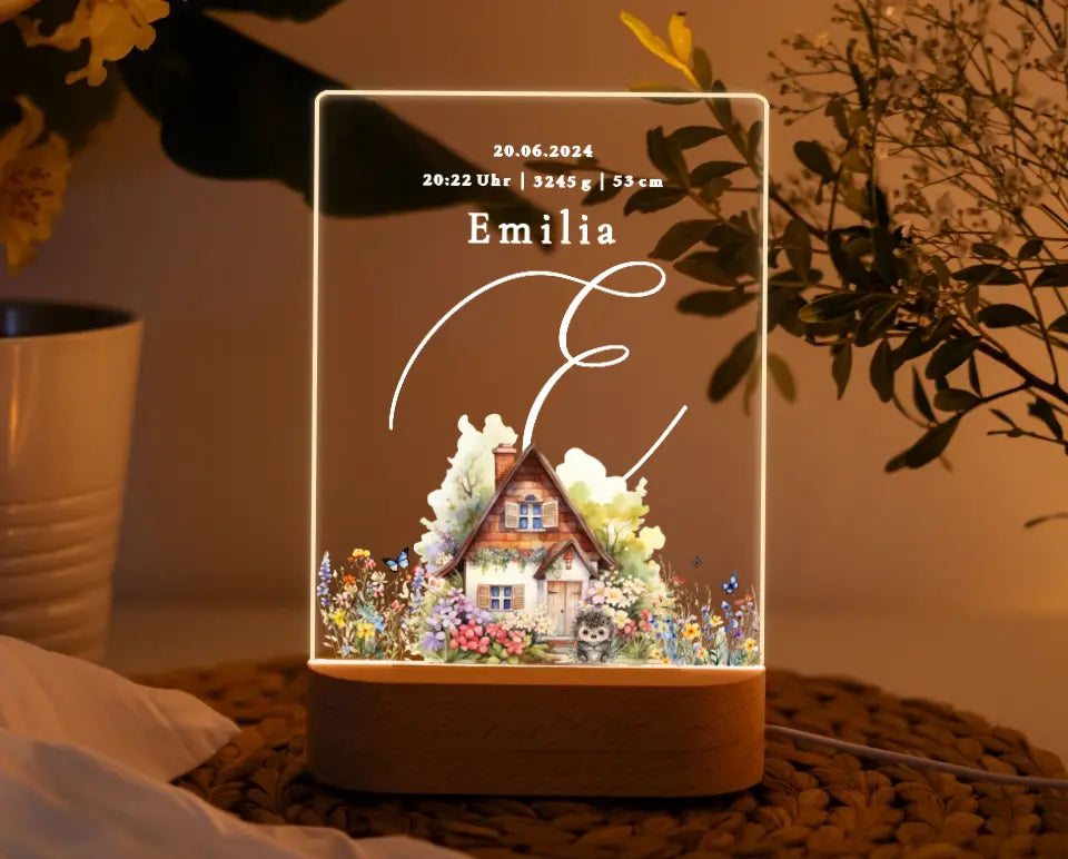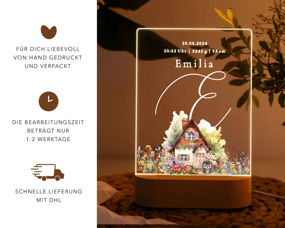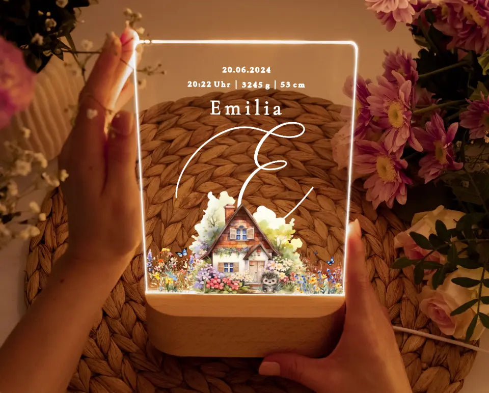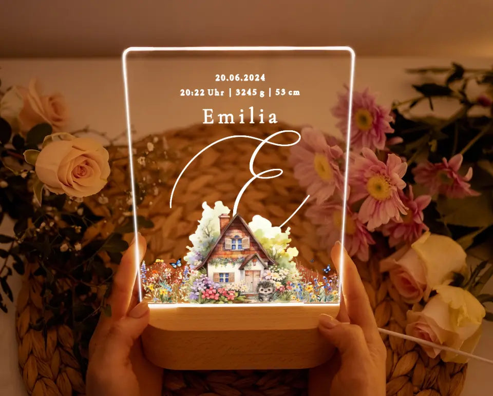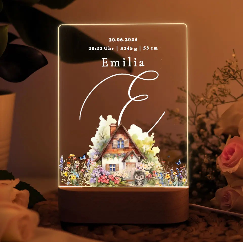 Nachtlicht personalisiertes Geburtsgeschenk Aquarell Häuschen
