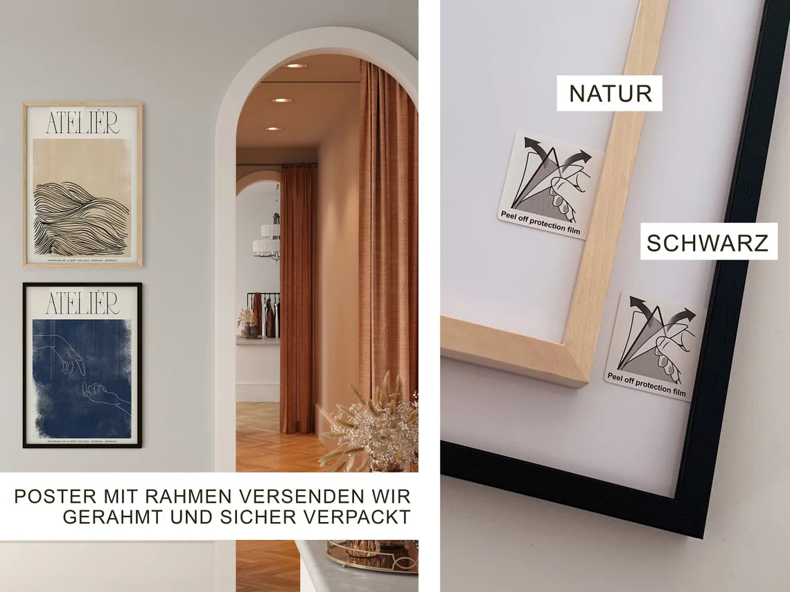 Das Bild kannst Du auch zusammen mit einem passenden Massivholzrahmen (Schwarz oder Natur) bestellen. Dann wird das Bild bereits gerahmt geliefert.