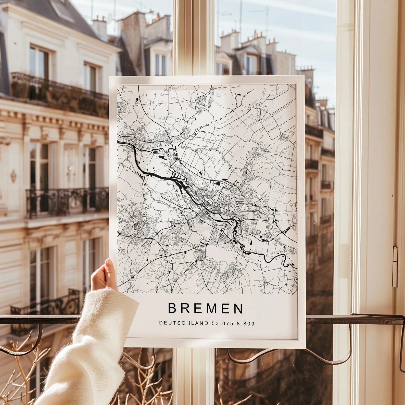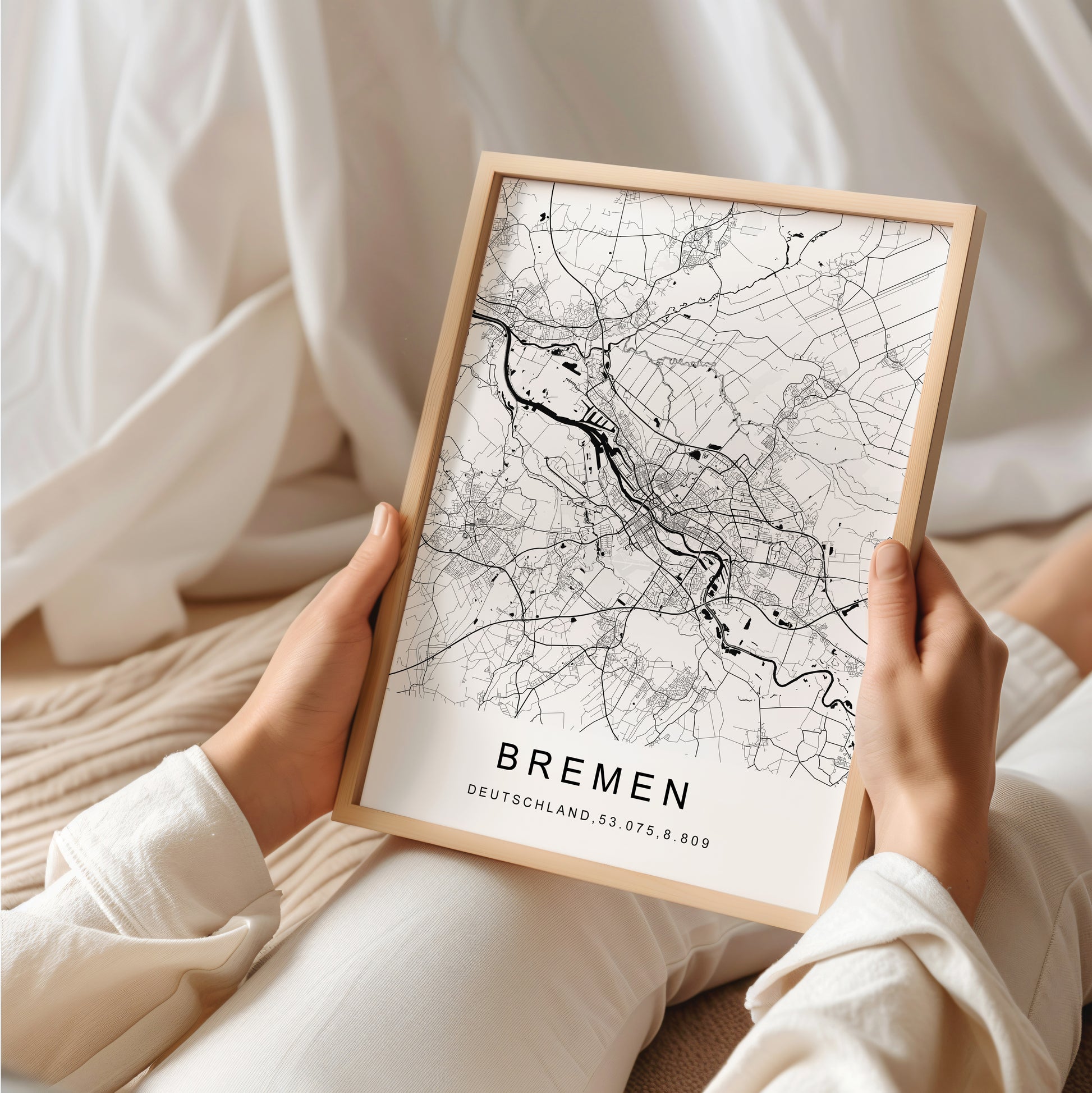Personalisierte Stadtkarte im skandinavischen Stil – Deine Stadt als stilvolles Poster mit Koordinaten. Ideal als modernes Wohnaccessoire oder Geschenk mit persönlicher Note ✨