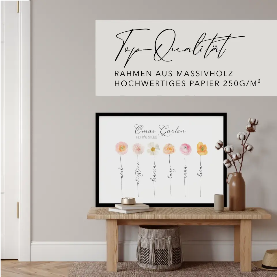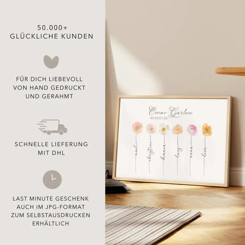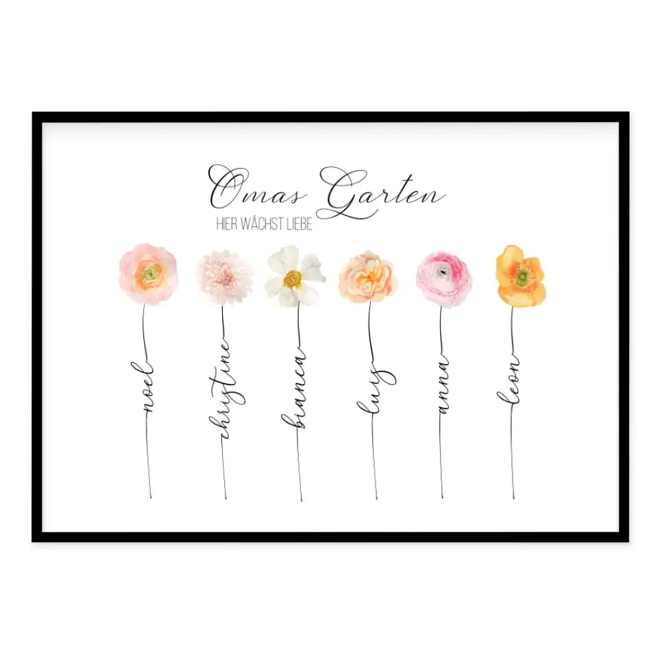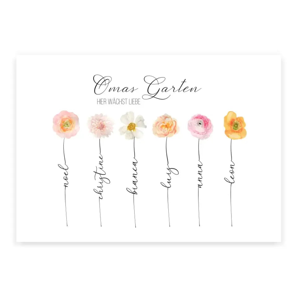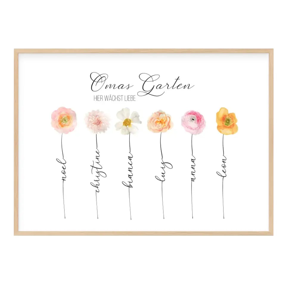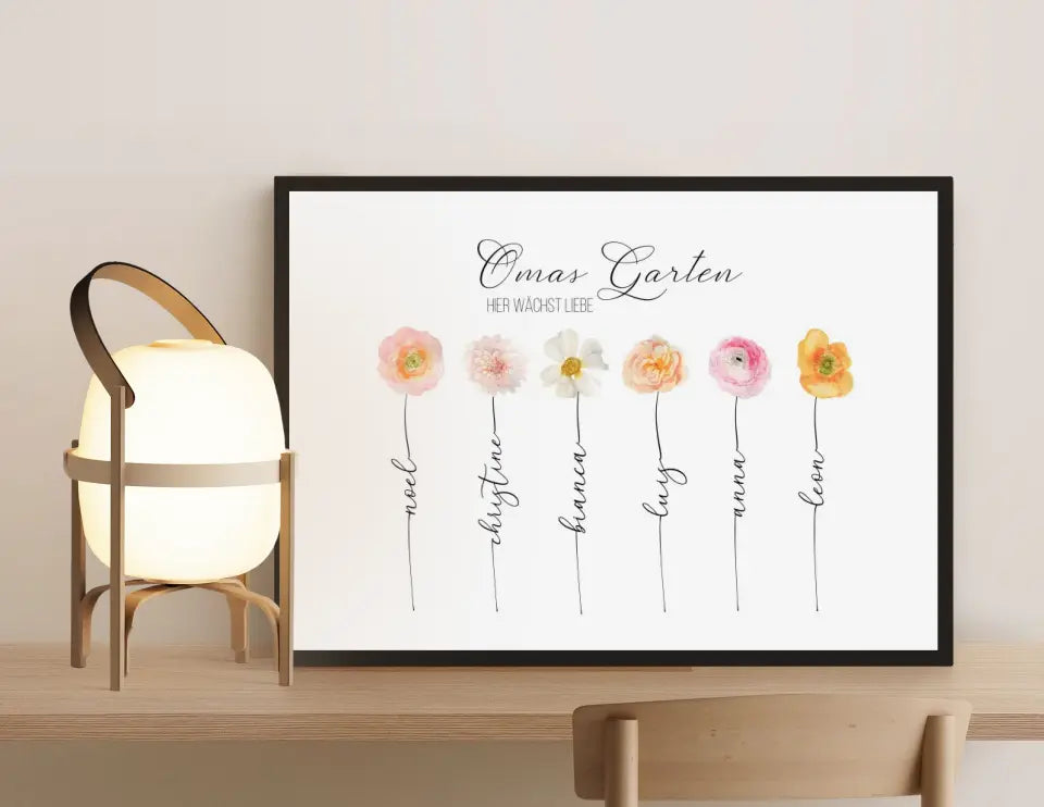 🎁 Unser personalisiertes Poster "Omas Garten" ist das perfekte Geschenk für Oma zum Geburtstag oder zum Muttertag. Bestelle jetzt dieses einzigartige Geschenk und zeige Oma, wie sehr sie geschätzt wird!