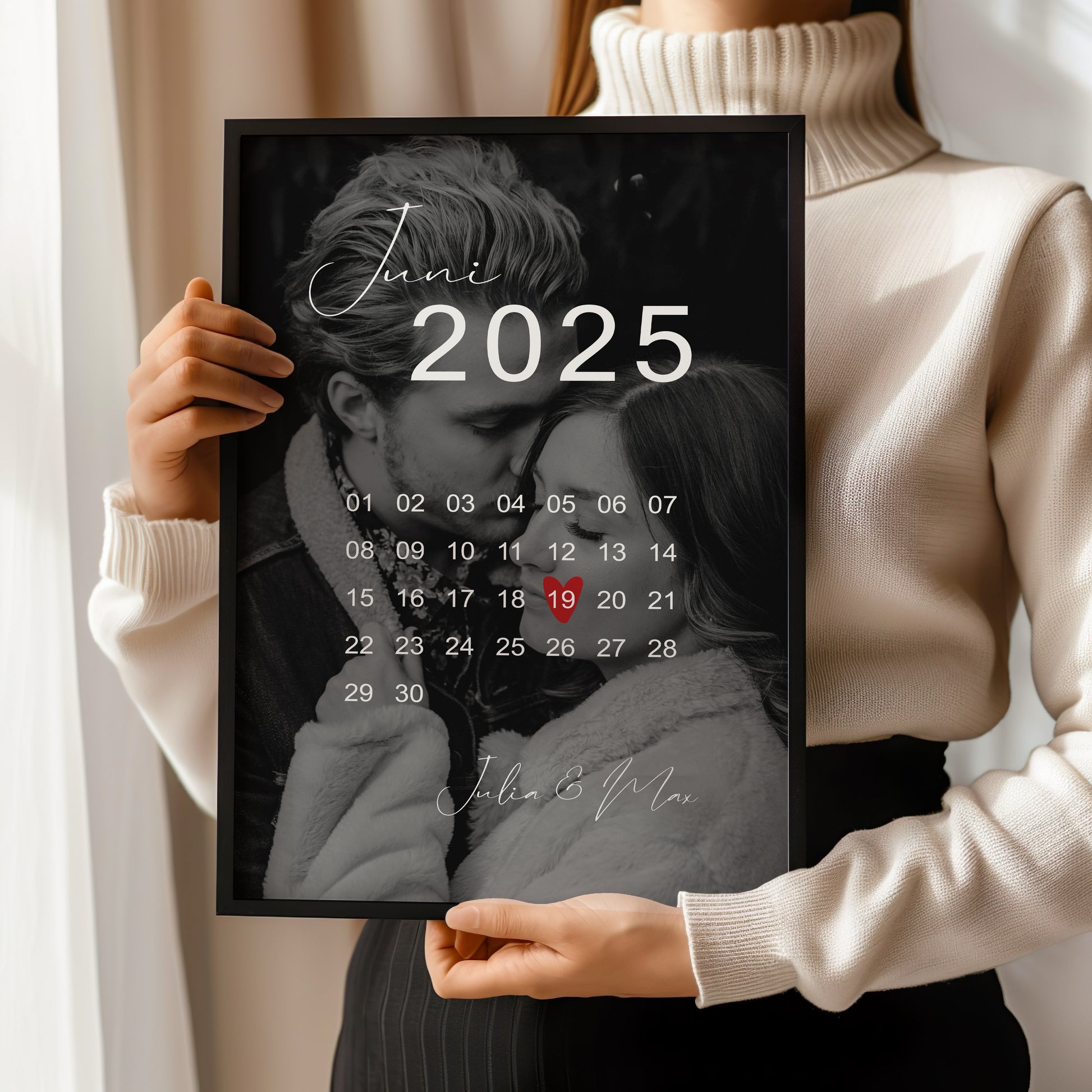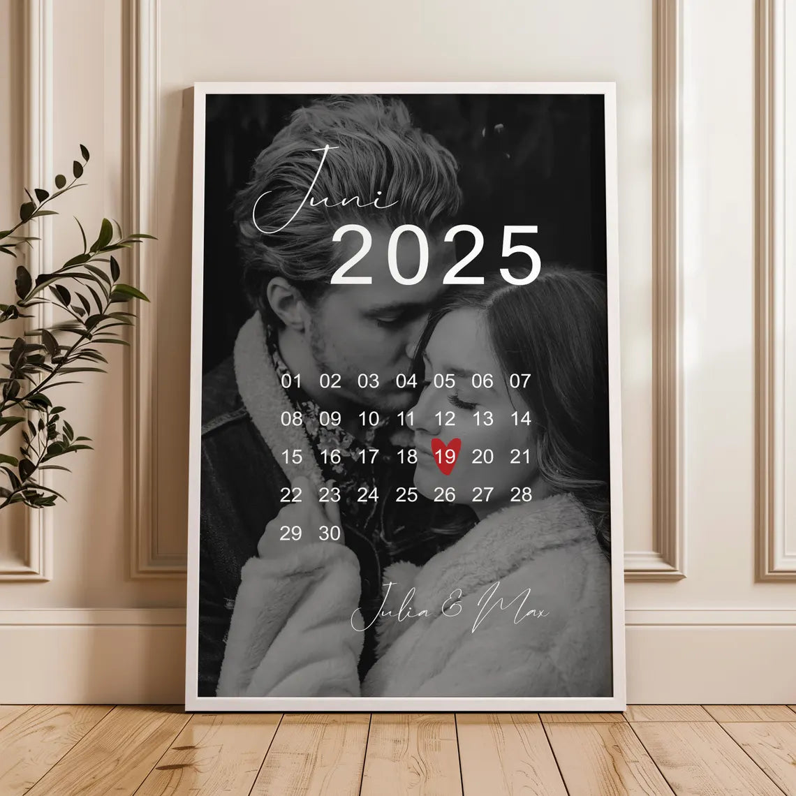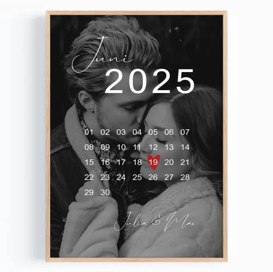 Ein einzigartiges Kalender-Poster mit eurem Foto zur Erinnerung an einen ganz besonderen Moment. Ideal als personalisiertes Geschenk zur Hochzeit, Verlobung oder zum Jahrestag ❤️