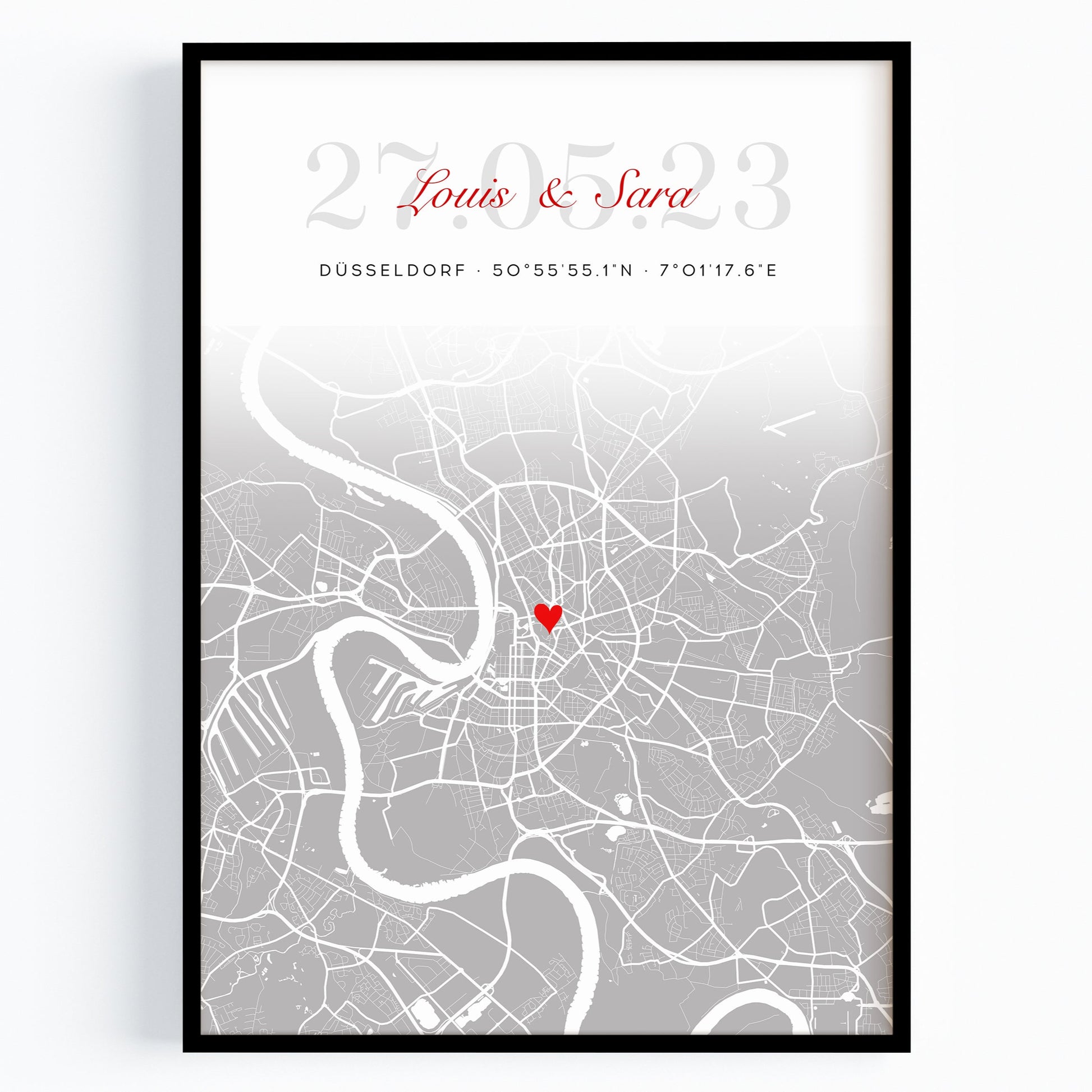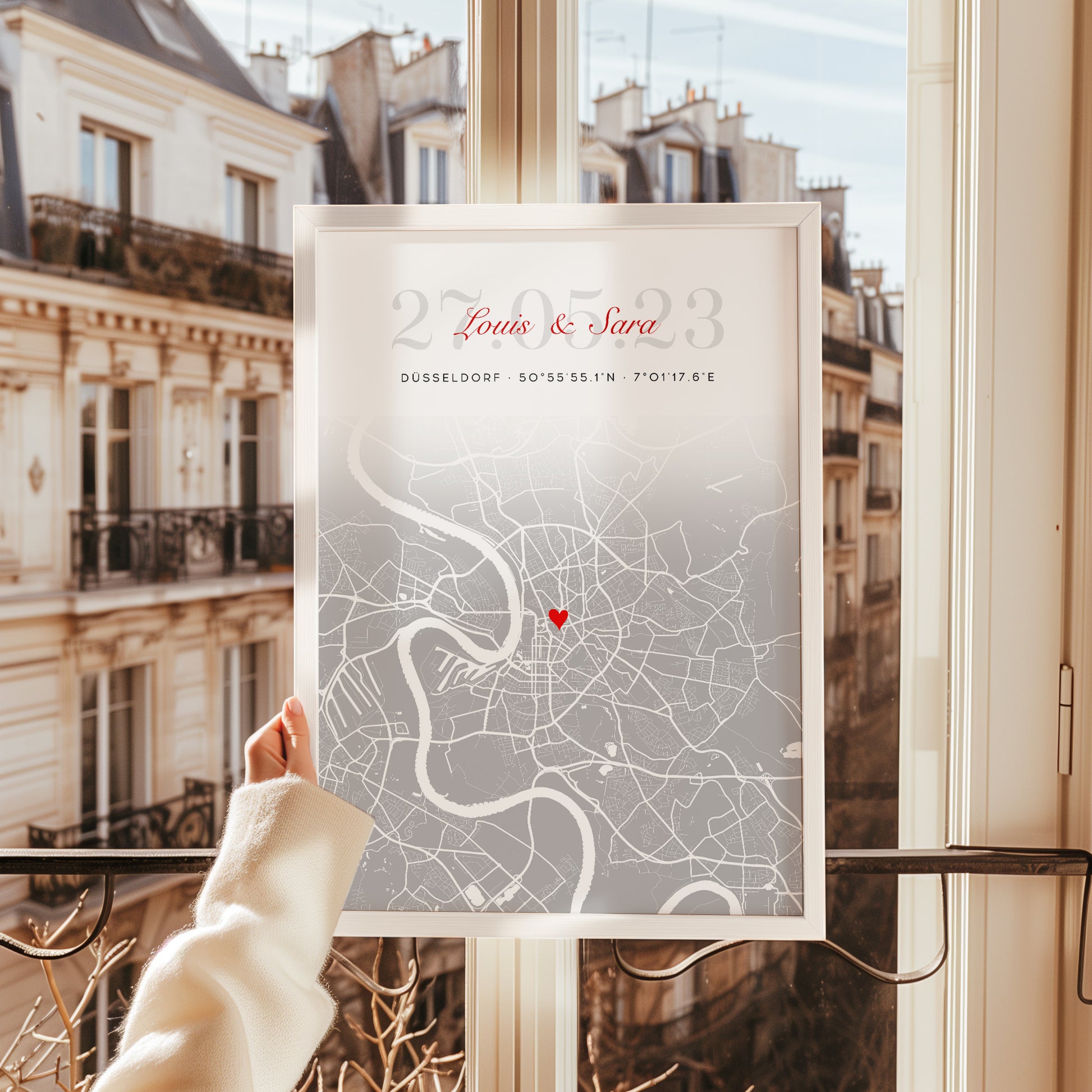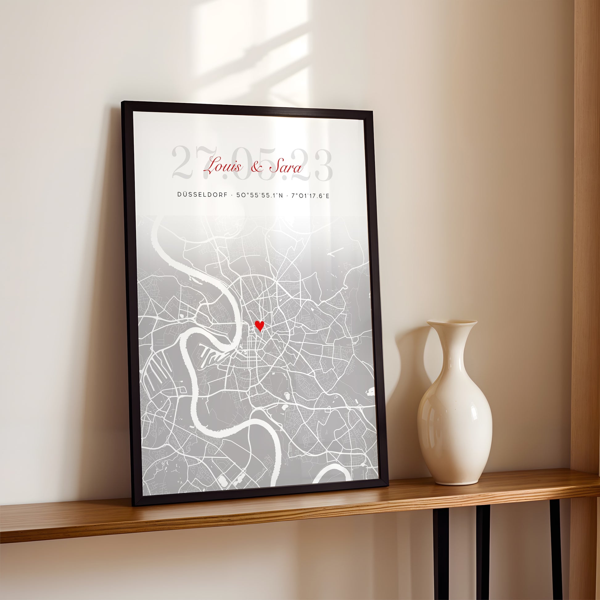 Stadtkarte mit Datum und Namen – ein besonderes Geschenk zum Jahrestag oder zur Hochzeit, das eure gemeinsame Geschichte auf liebevolle Weise festhält 💞