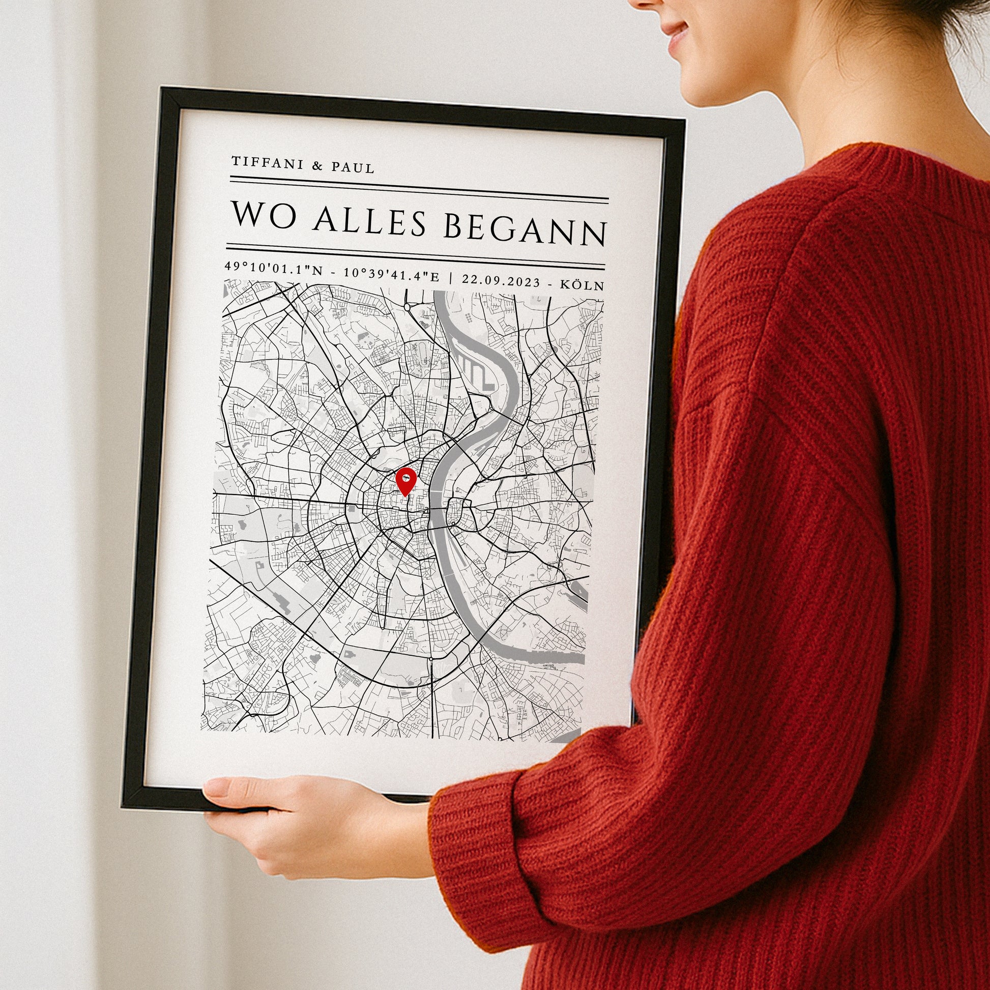 "Wo alles begann" Personalisierte Stadtkarte Hochzeitsgeschenk