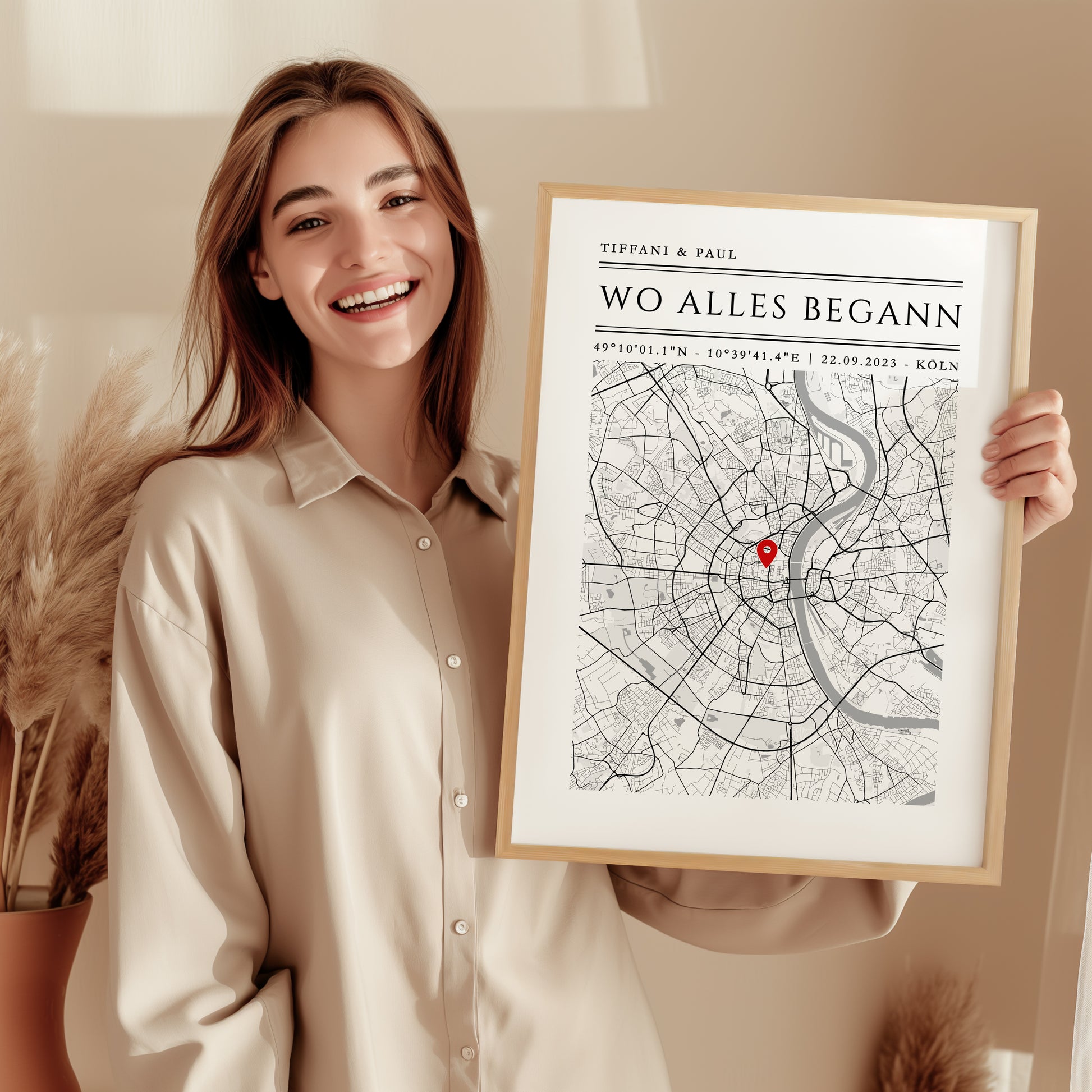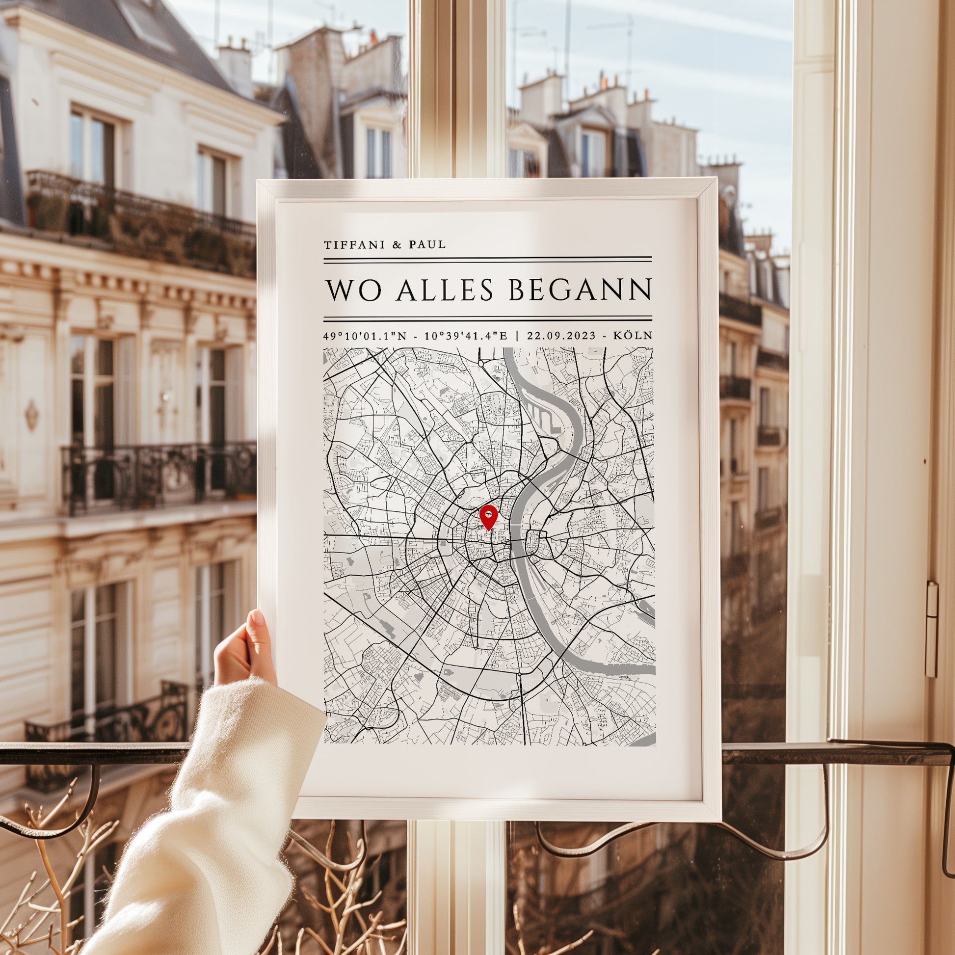 Stadtkarte „Wo alles begann“ – ein besonderes Geschenk zur Verlobung, Hochzeit oder zum Jubiläum. Erzählt eure Geschichte auf stilvolle Weise ❤️